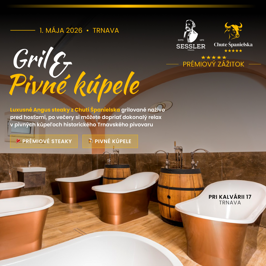 Zažite deň, kde sa stretáva sila prémiového mäsa z grilu s atmosférou historického pivovaru. Angus steaky z európskeho chovu Miguel Vergara, grilované priamo pred hosťami, živá hudba, otvorenie letnej terasy — a po poslednom súste? Dokonalý relax v pivných kúpeľoch Sessler.