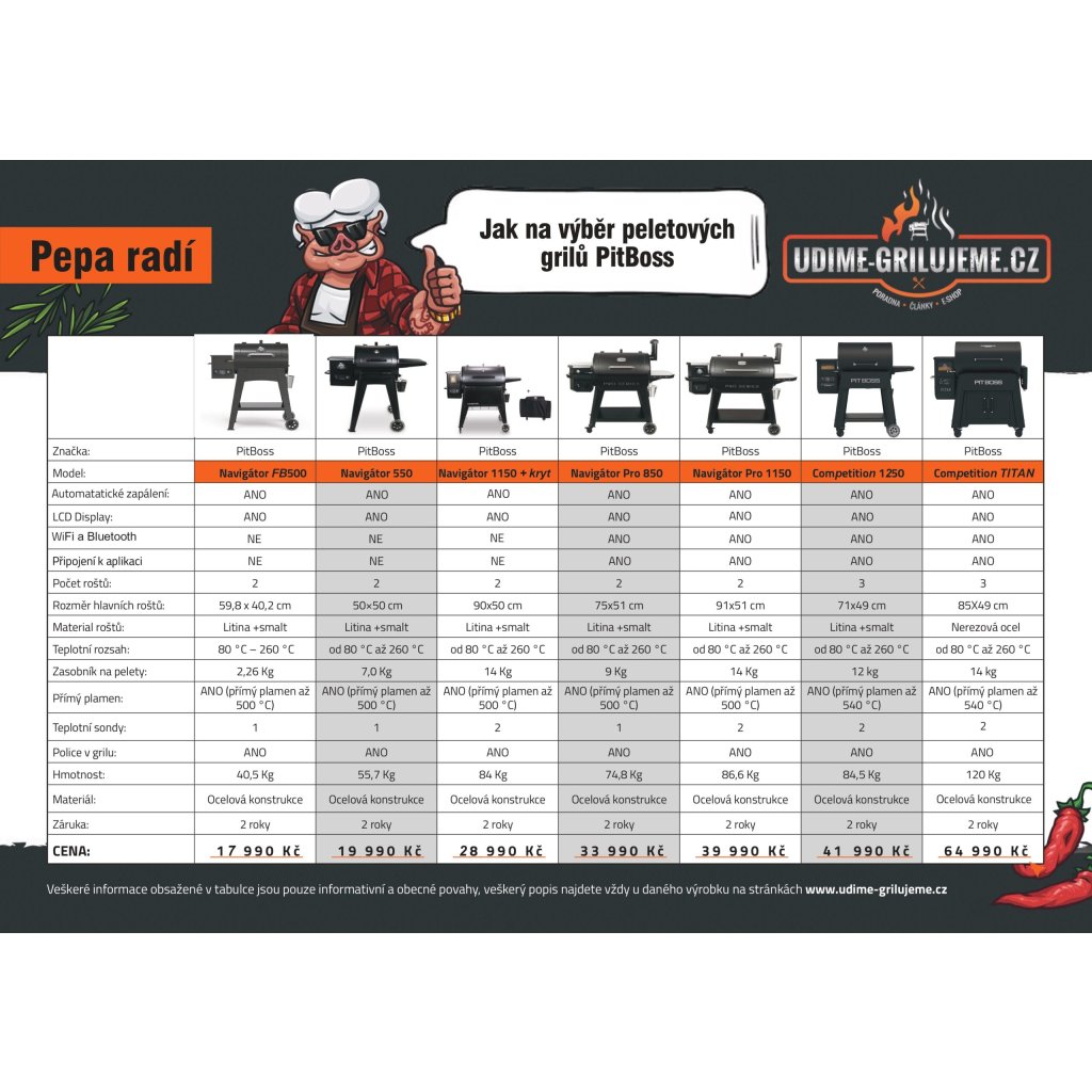 Pit Boss Navigator 550 (PB550G) je ideálny vstup do sveta peletových grilov, keď chceš pohodlie, stabilnú teplotu a zároveň dymovú chuť, ktorá robí BBQ tým pravým BBQ. Je to peletový gril, ktorý je veľkosťou super na terasu alebo menšiu záhradu, ale funkciami sa správa ako “veľký” gril.