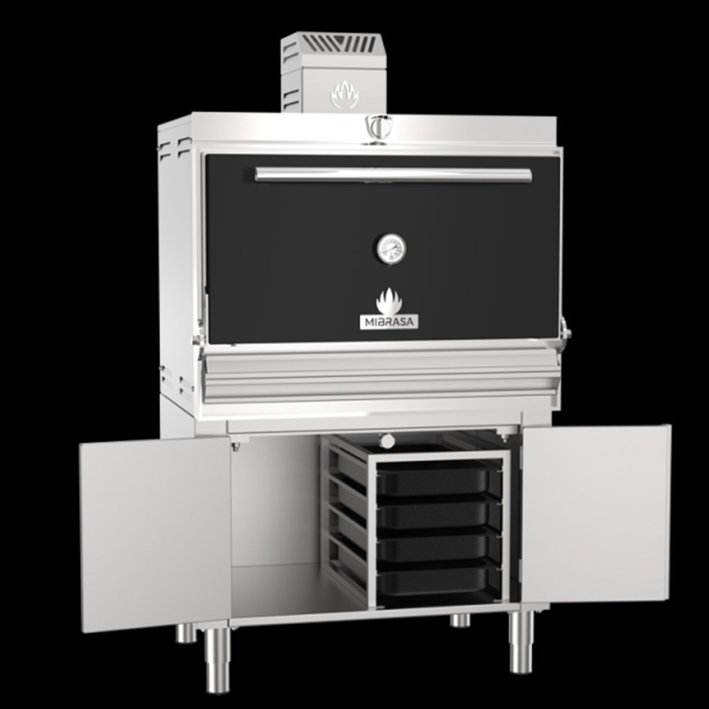 Mibrasa Vertical je pec na drevené uhlie so spodnou vyhrievanou skrinkou, ktorá kombinuje gril aj pec v jednom. Má stabilný výkon, robí brutálnu kôrku a pritom drží šťavnatosť vo vnútri. Spodná skrinka je ideálna na udržiavanie jedla v teple a lepší poriadok v kuchyni.