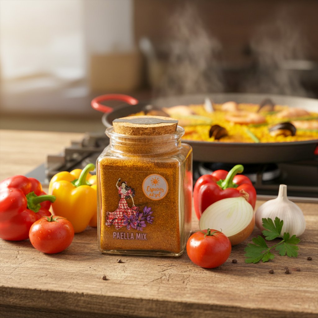 Zažite pravú chuť Španielska v každej lyžičke s Paella Mix od Especias del Sol. Táto prémiová zmes korenín je vytvorená podľa tradičnej receptúry, aby vašej paelle dodala neodolateľnú farbu, vôňu a chuť. Obsahuje údenú papriku, cesnak, cibuľu, tymian, petržlen, morskú soľ a šafran, ktoré spolu vytvárajú dokonalú harmóniu pre ryžu, morské plody či kuracie mäso.